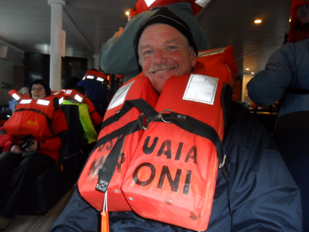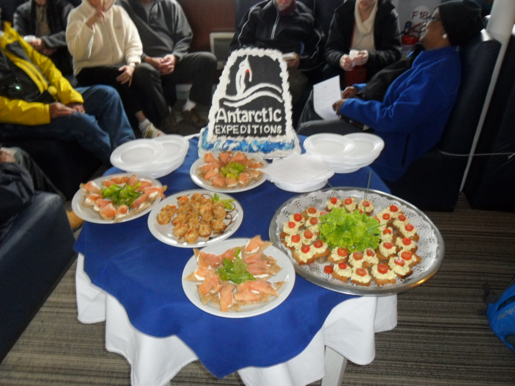 Um 16.00 Uhr gehen wir an Bord der "MV Ushuaia" . Wir bekommen unsere Kabinen zugeteilt und werden anschliessend vom Kapitän mit einem Snack und einem Glas Champagner begrüsst. |